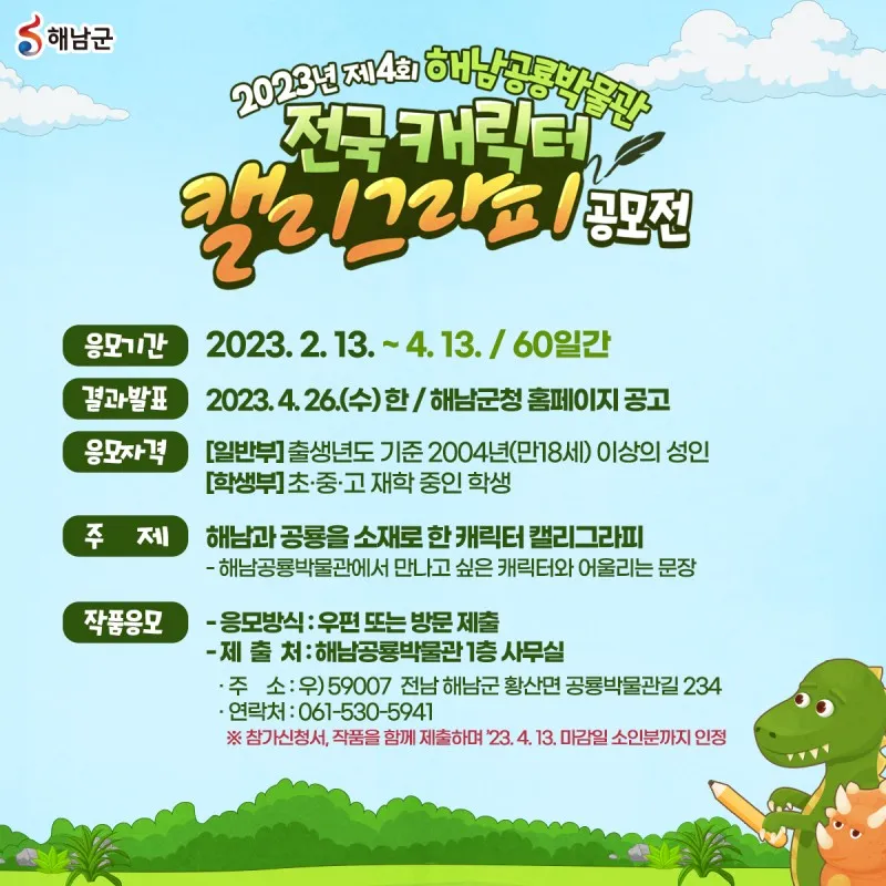 해남군은 #해남공모전 해남과 공룡을 주제로 한 독창적인 캐릭터 발굴을 위한