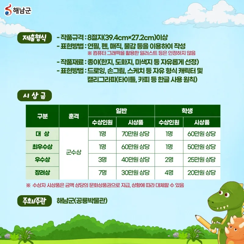 선정된 입상작들은 해남공룡박물관에서 전시되며 해남군과 캐릭터에 대한