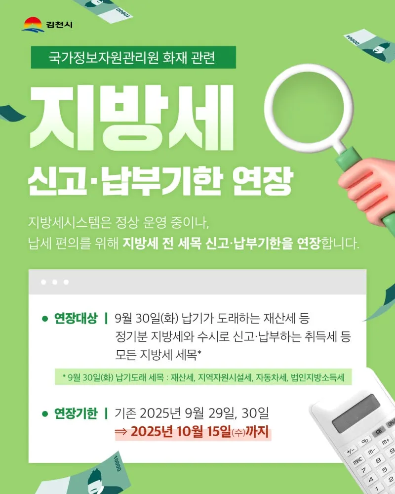 *9월 30일 납기 도래 세목 : 재산세, 지역자원시설세, 자동차세, 법인지방소득세