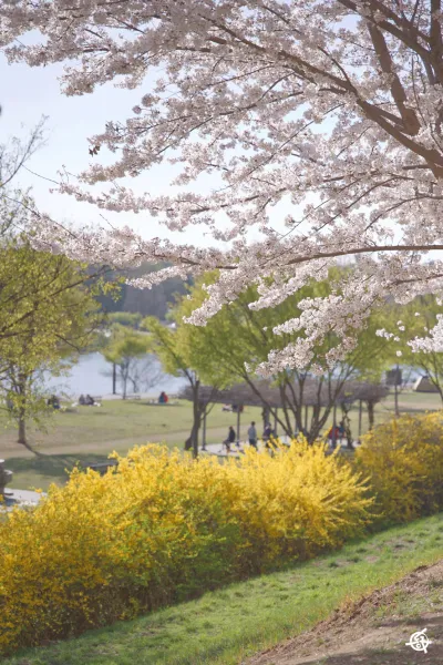 개나리와 벚꽃의 조화를 느낄 수 있는