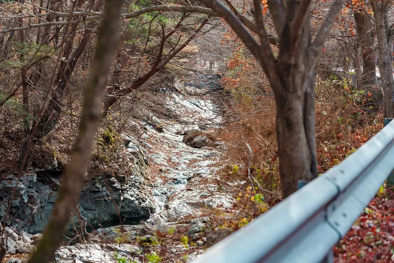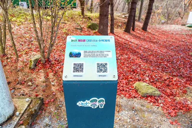 대둔산 초입구에서 만나게 되는 마지막 단풍들이 관광객의 시선을 사로잡았습니다. 시원한 계곡물과 함께 논산 3경으로 알려진 대둔산과 수락계곡은 천혜의 자연경관을 간직하고 있어 사람들에게 사랑받는 명소 중 하나입니다. 수락계곡은 석천암에서 군지계곡을 거쳐 흐르는 맑은 물로써 한여름에도 차갑기로 알려져 있습니다.
