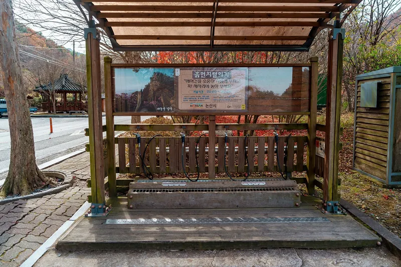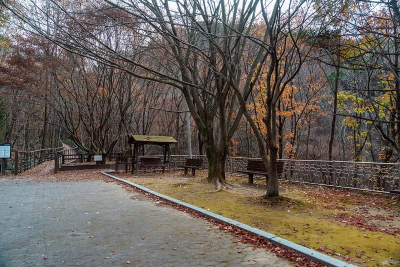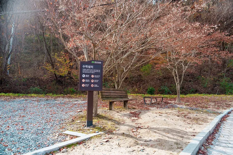 산책로와 계곡을 뒤로하고 약 30여 분 정도 오르다 보면 대둔산 곳곳에 수락 쉼터가 나옵니다. 산책길이 평탄하게 되어있지만 방문객의 체력과 휴식을 위한 쉼터가 조성되어 있습니다.