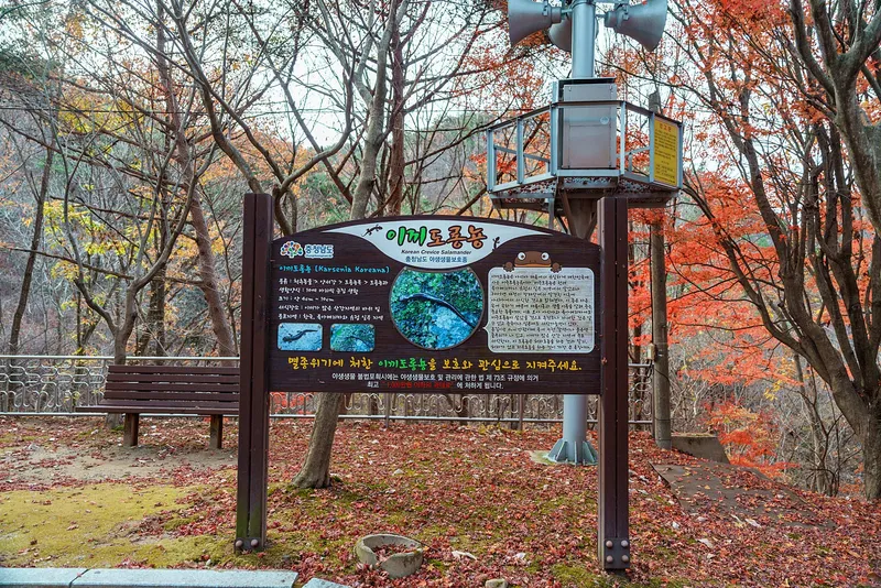 드디어 대둔산 승전탑이 보이기 시작하면서 마지막 커브길에 들어섭니다. 대둔산에는 이끼도롱뇽이 서식한다고 합니다. 멸종 위기에 처한 도롱뇽으로써 이끼가 많은 산간지역의 바위 밑에 서식한다고 알려져 있습니다. 허파가 없어 허파 호흡 대신 피부호흡을 하는 것이 큰 특징입니다.