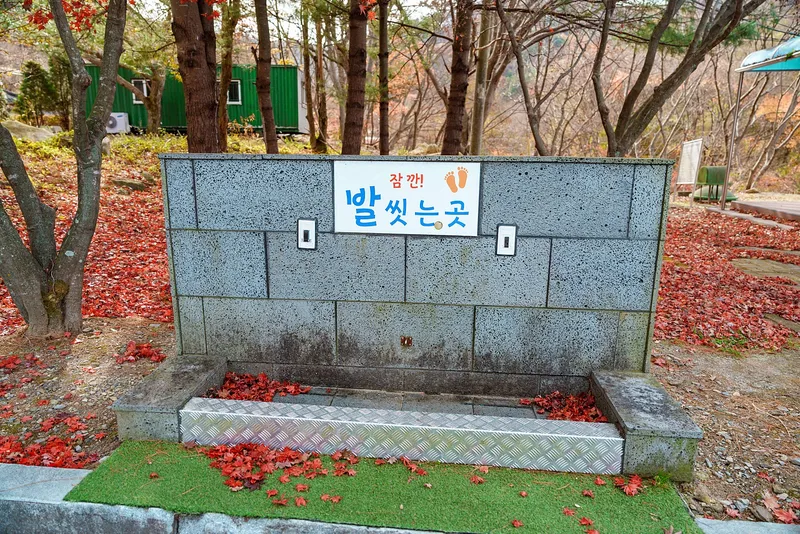 산책로를 따라 10여 분 정도 걷다 보면 우측으로 대둔산 수락 캠핑장이 보이기 시작합니다. 산책로와 함께 주말에는 문전성시를 이룬다는 대둔산 캠핑장은 자연 속에서 힐링하기 좋은 주말여행지입니다. 가격은 비수기 25,000원 성수기 및 주말은 30,000원으로 책정되어 있으며, 온수와 전기 사용료는 별도로 없습니다. 특히 봄과 가을에는 예약이 많아 서둘러 결제를 해야만 이용이 가능합니다.