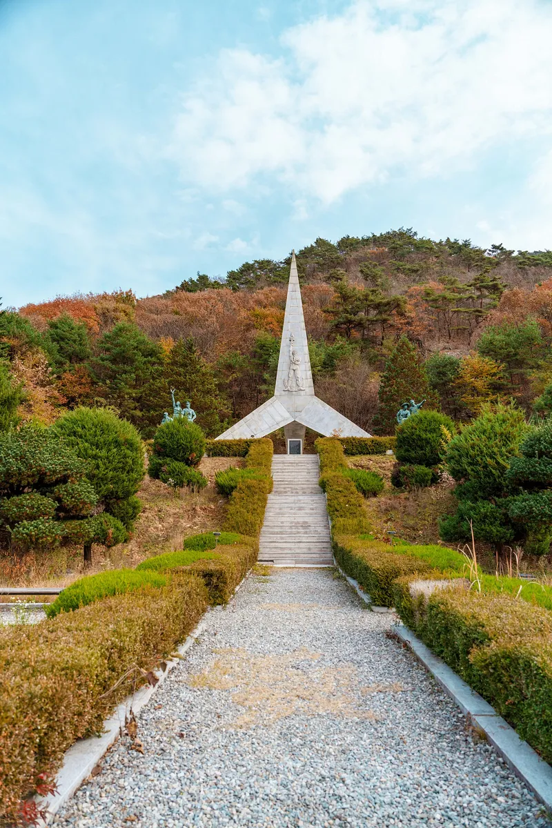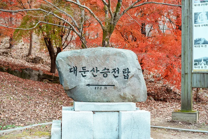 대둔산 승전탑을 구경하기 위해선 수락리를 시작으로 수락계곡을 거쳐 약 40여 분을 천천히 걸어 올라가면 만날 수 있습니다. 대둔산 승전탑은 대둔산 기슭에 108개의 돌계단 위에 20M의 승전탑이 우뚝 솟아 있으며, 각 전사자들의 이름이 새겨진 충혼비와, 참전용사 군상 등이 세워져 있습니다.