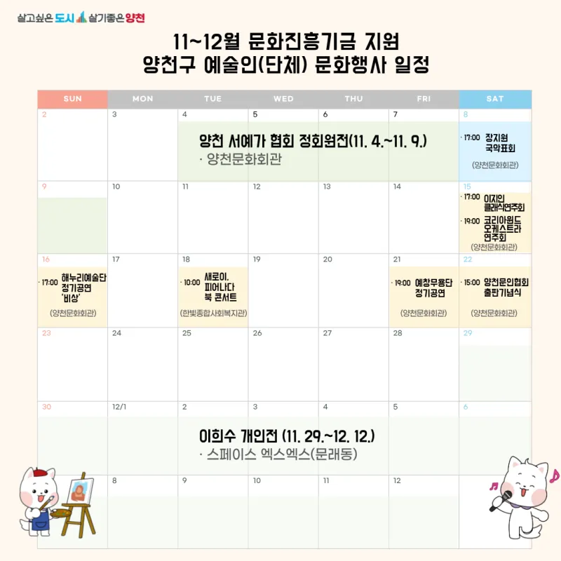 양천구 관내 예술인·예술단체 문화공연 및 전시 관람 홍보