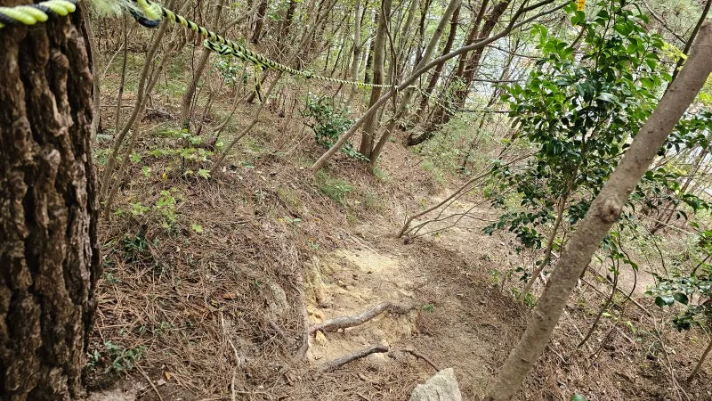 나무와 나무를 연결하여 밧줄이 설치가 되어 있습니다.