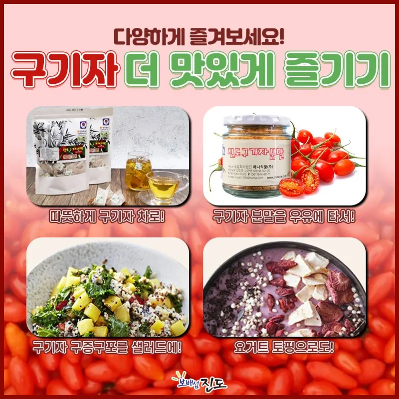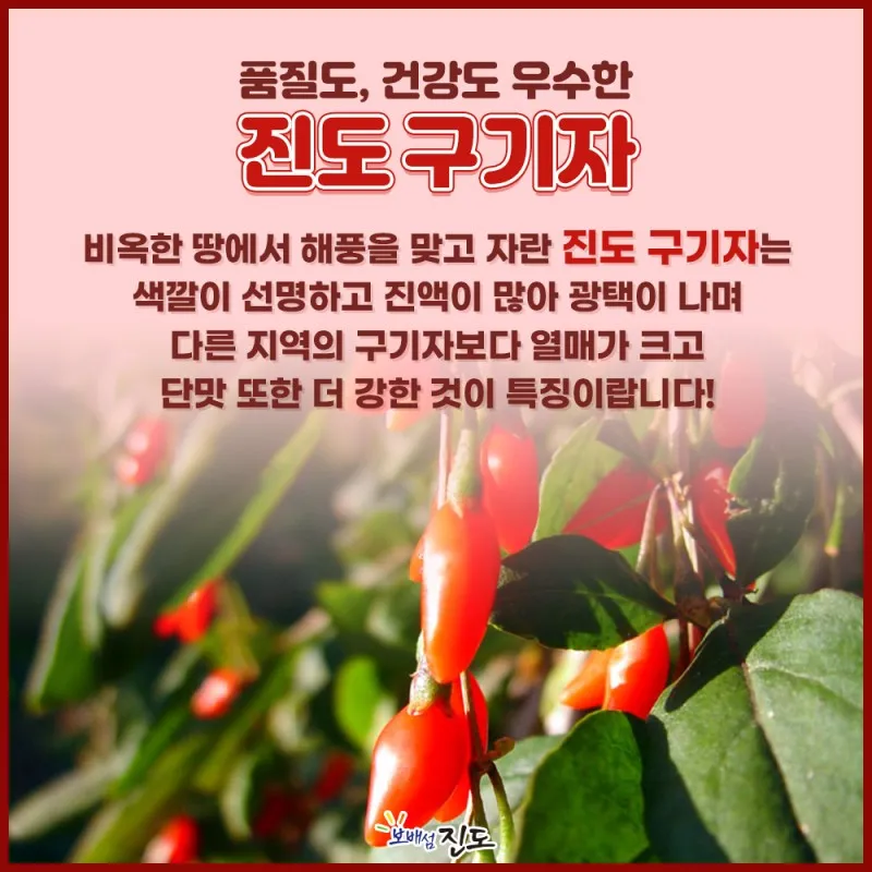 진도 구기자는 색깔이 선명하고 진액이 많아 광택이 나며 다른 지역의 구기자보다