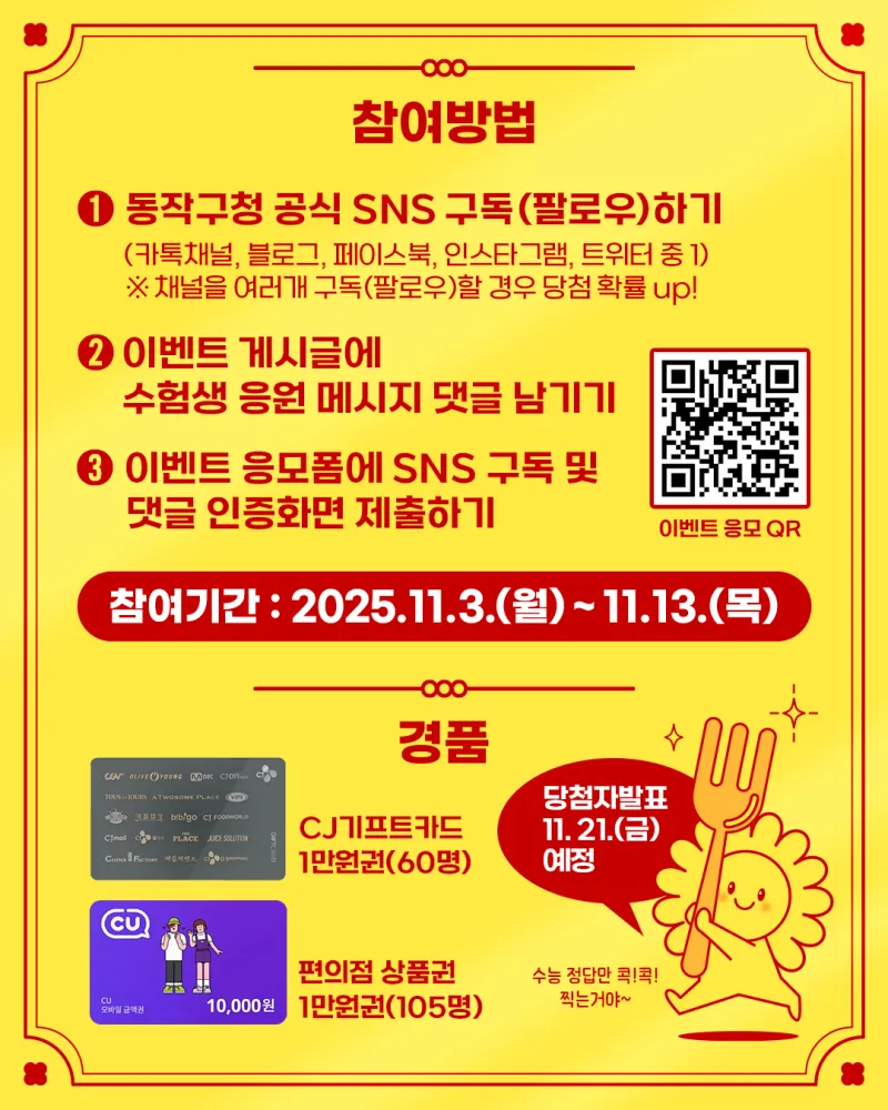 ※ 당첨자 명단은 동작구청 블로그에 게시됩니다.