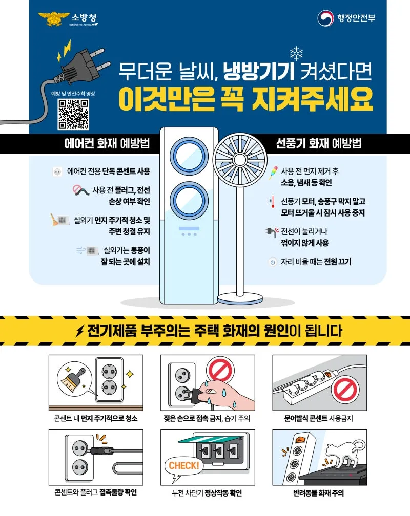 #여름철화재예방 #전기안전수칙 #에어컨안전 #선풍기안전 #콘센트주의 #화재예방캠페인 #행정안전부 #소방청