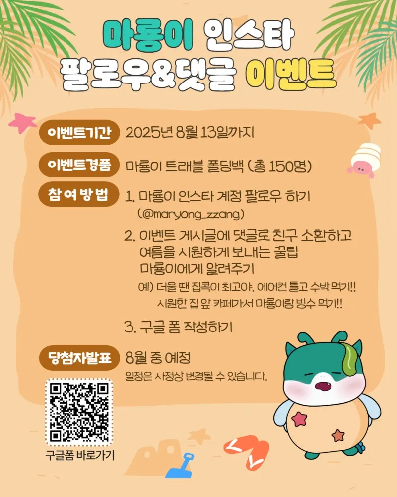 ✅ 이벤트 경품 : 마룡이 굿즈 총 150명 무작위 추첨