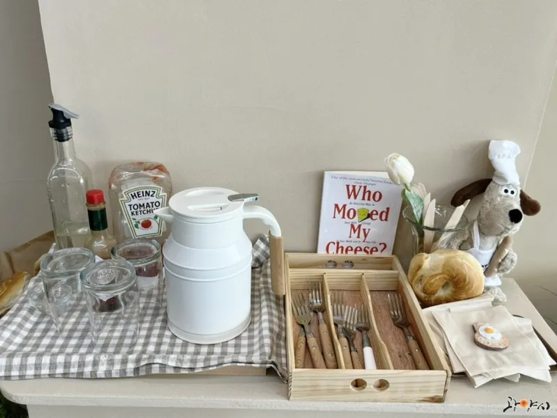 물, 물컵, 식기류, 티슈가 비치되어있어요