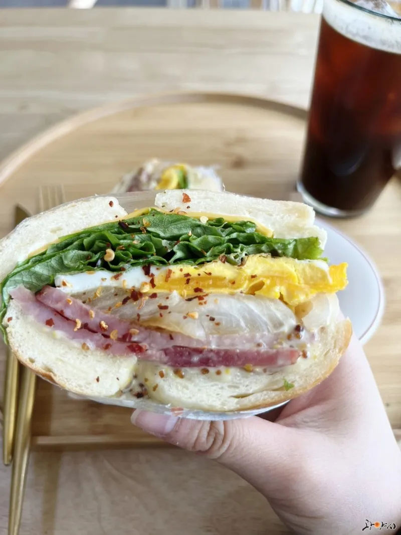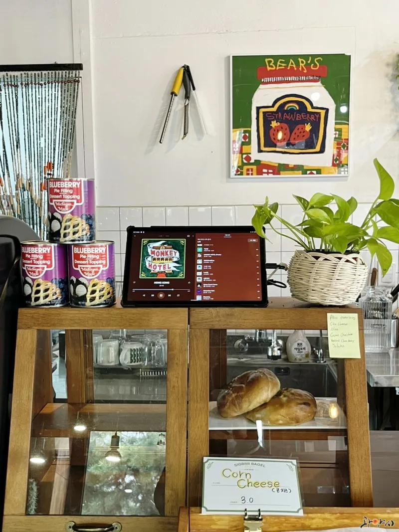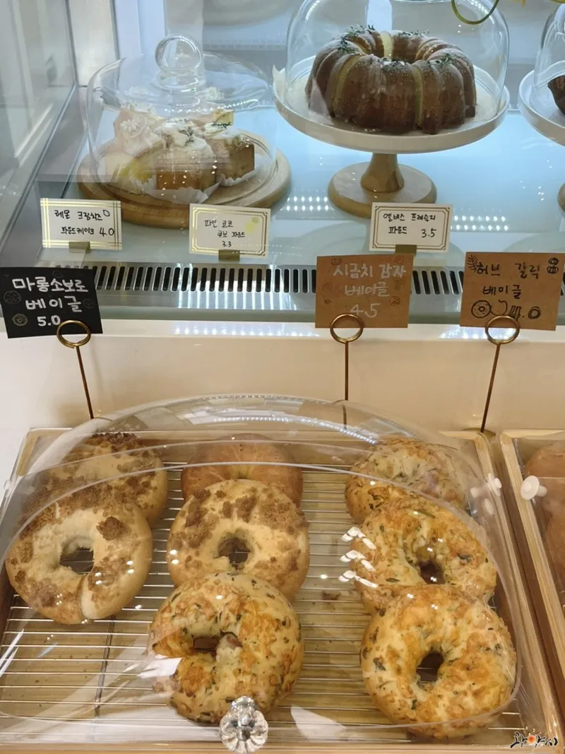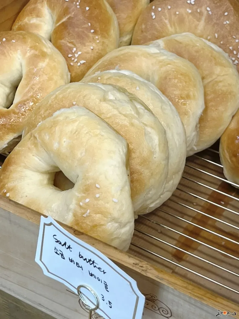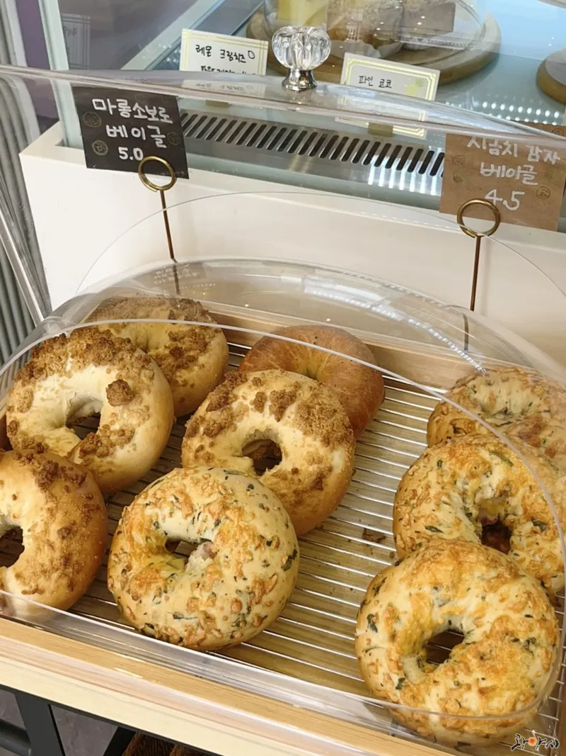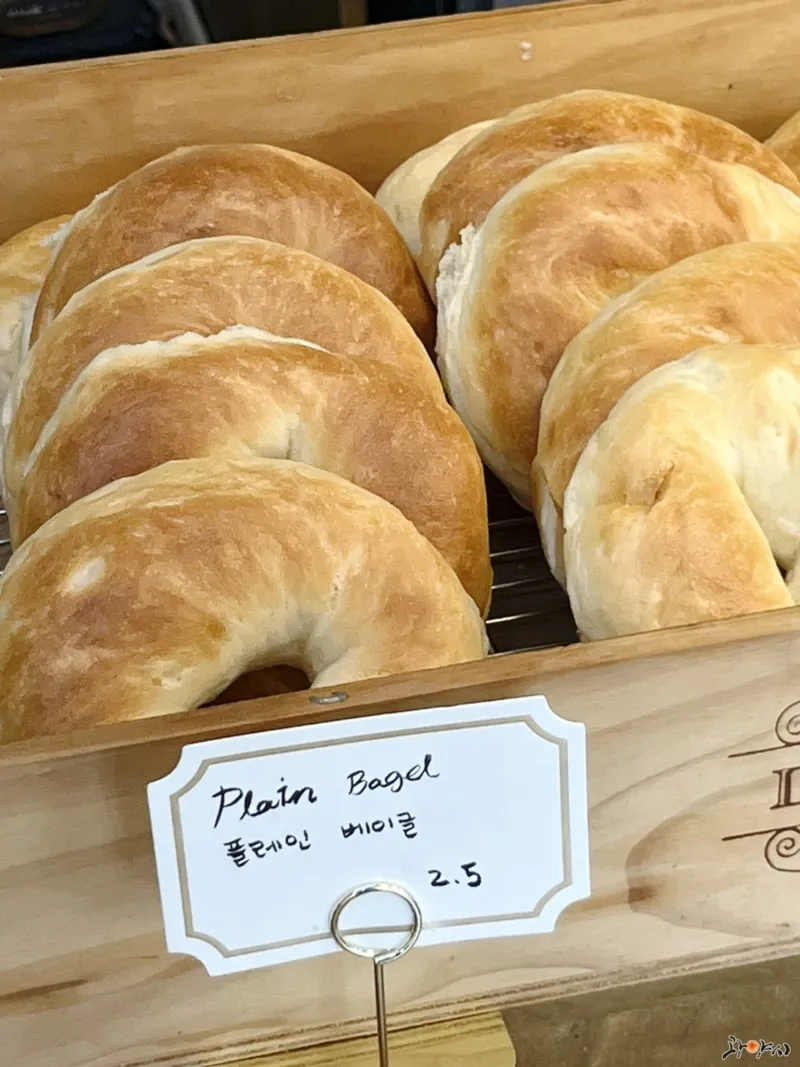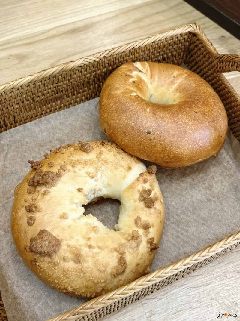 저는 시금치치즈 베이컨, 소금버터 베이글,