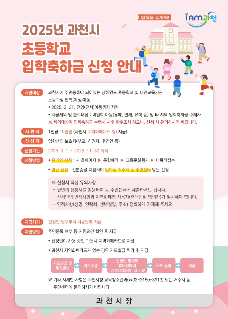 초등학교 입학을 축하합니다! <2025 초등학교 입학축하금 10만원 지원>