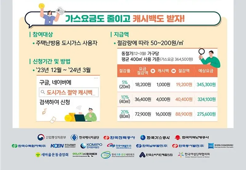 - ’23년 12월 ~ ’24년 3월, 구글·네이버에 도시가스 절약 캐시백 검색하여 신청
