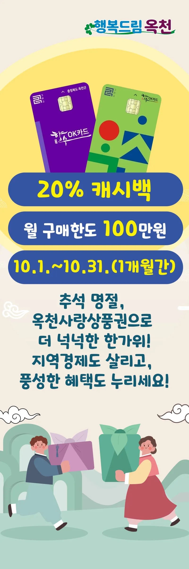 옥천군 추석 맞이 향수OK카드 캐시백 20% 지원