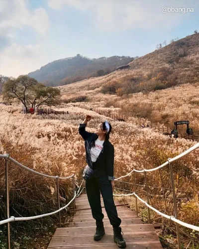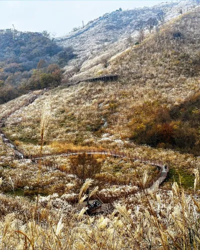 산에 끝없이 펼쳐진 억새밭🌾을 볼 수 있어요.