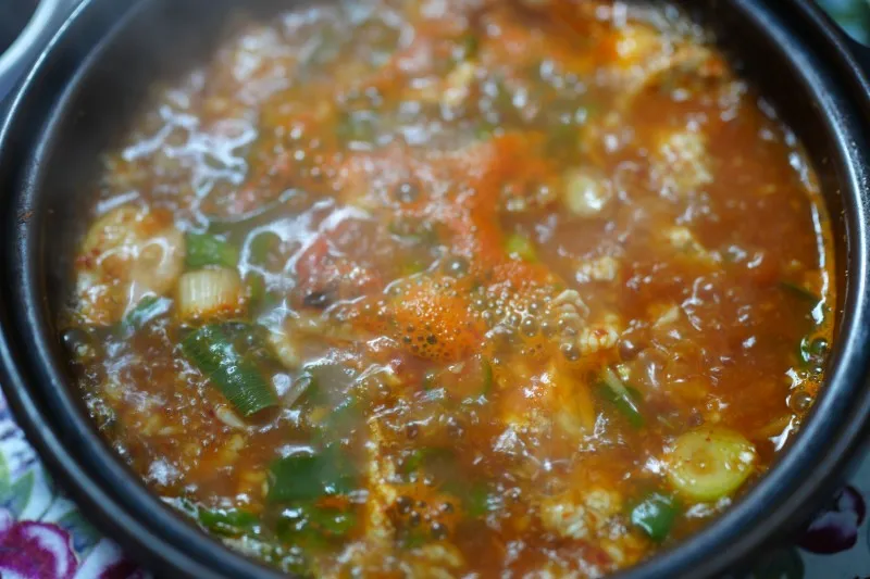 꽃게탕에 알이 가득 들어 있어서
