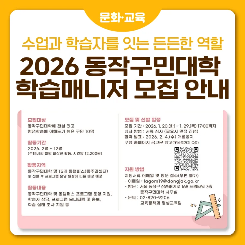 🎓2026 동작구민대학 학습매니저 모집 안내