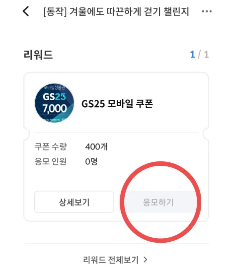 04 기간 내 걸음수 & 스탬프 달성 후 [응모하기] 누르기 ★챌린지 완료 후 리워드 꼭 응모하기★ |