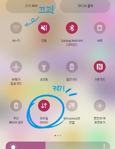 ✔ wifi는 끄고 데이터와 위치정보를 켜주세요