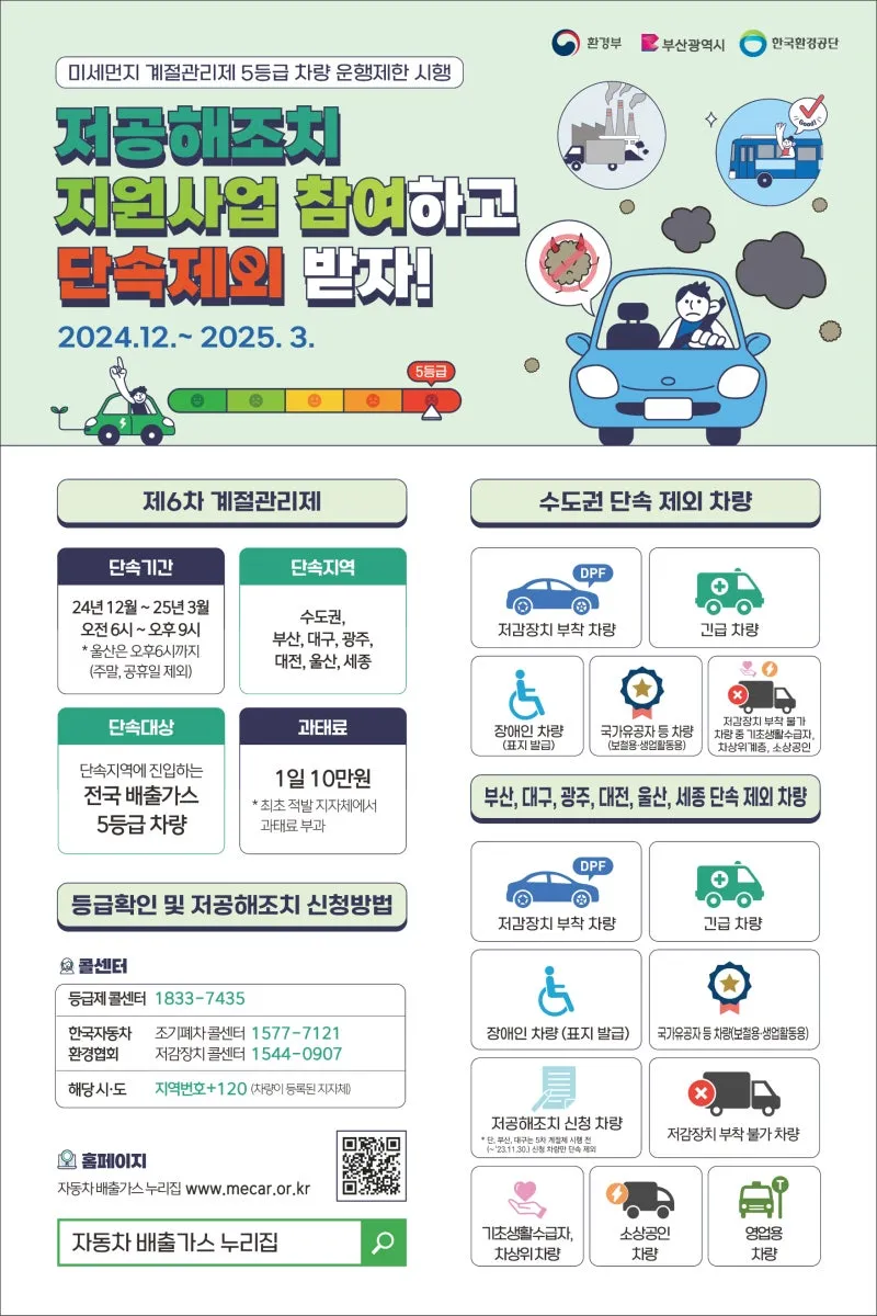 제6차 미세먼지 계절관리제 기간 배출가스 5등급 차량 운행을 제한합니다!