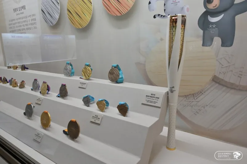 이어서 평창올림픽에 참여한 국가대표 선수들에게 수상한 기념메달과 성화봉도 볼 수 있었습니다.