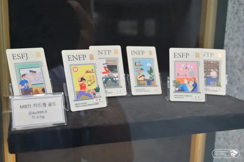 MBTI 유형별 카드형 골드바도 판매하고 있어 기념으로 소중한 사람한테 선물해 보는 것이 어떨까요? 디자인 역시 유형에 걸맞게 제작되어 있어 받는 이도 좋은 추억으로 남길 수 있을 것이라 생각이 들었습니다.