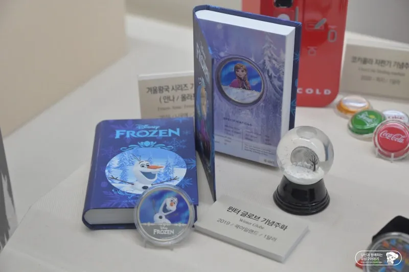 1층 주화 역사관에 위치한 제1전시실에는 벌써부터 아이들이 좋아할 만한 캐릭터가 들어간 기념주화를 볼 수 있었습니다. 디즈니에서 제작한 겨울왕국은 아이뿐만 아니라 어른들에게도 인기가 많아 구입하지 않았을까 생각해 보았답니다.
