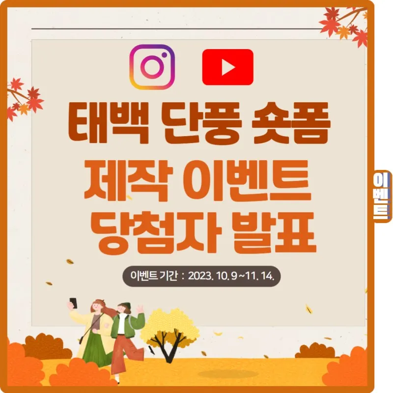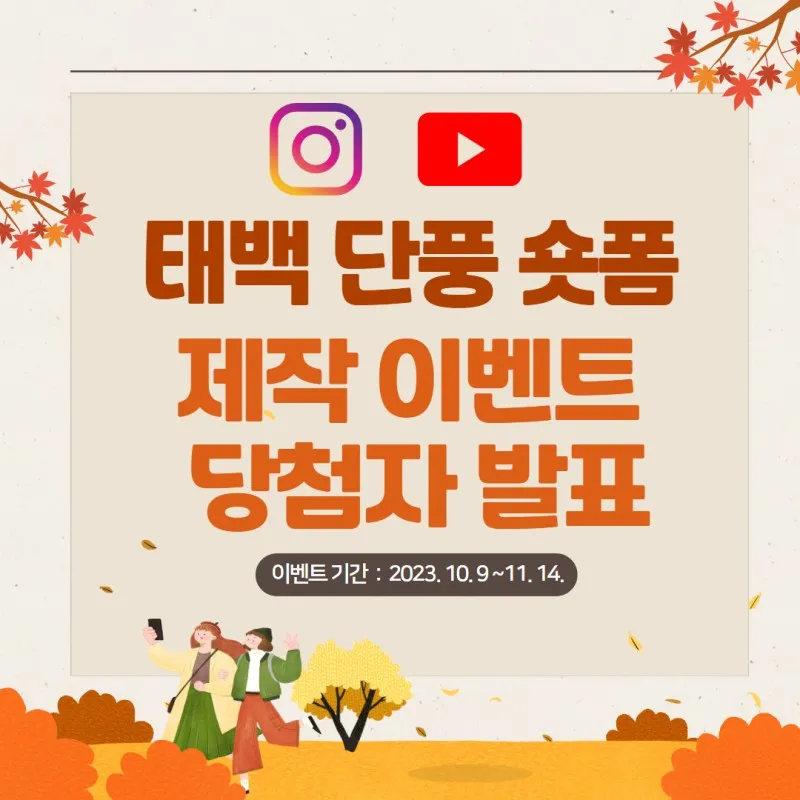 '2023 가장 먼저 만나는 단풍, 태백' 숏폼 제작 이벤트 당첨자 안내🎉