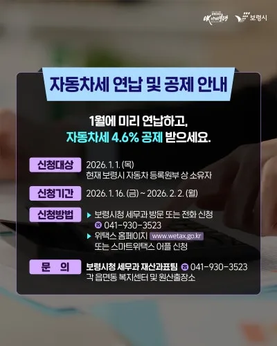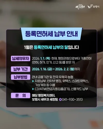 · 문의 : 해당 행정복지센터, 보령시 세무과 세정팀 (041-930-3513)