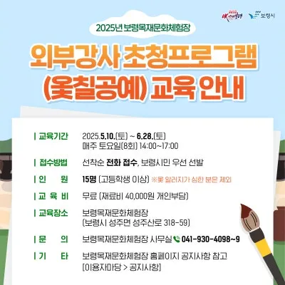 📞접수방법 : 선착순 전화 접수, 보령시민 우선 선발