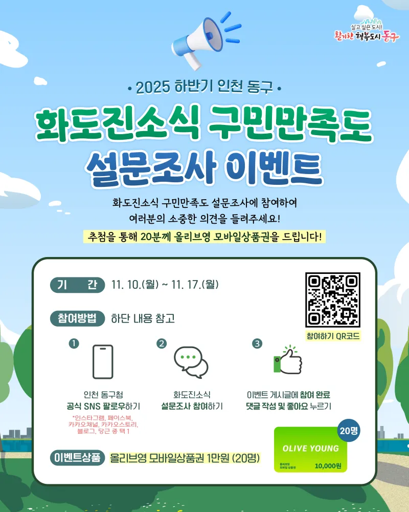 [인천 동구 이벤트] 인천 동구, 2025년 하반기 화도진소식 구민만족도 설문조사 이벤트!