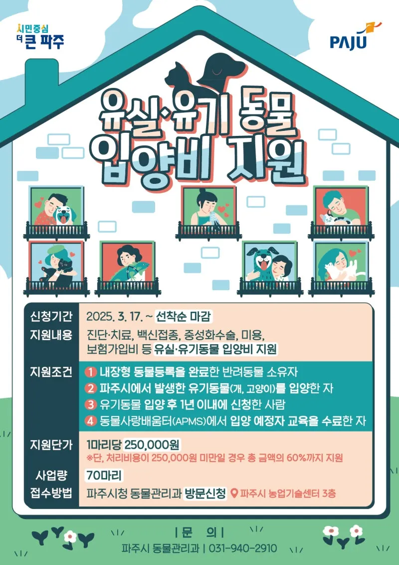 파주시에서 유실·유기동물 입양비를 지원해 드립니다!