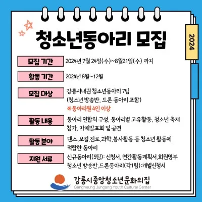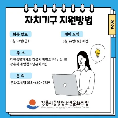2024 강릉시 중앙청소년문화의집 자치기구 청소년 모집!