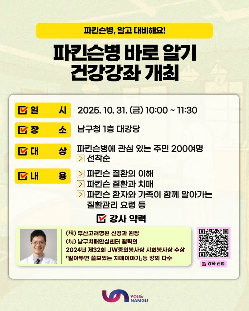 🌸 남구청과 함께하는 ‘파킨슨병, 바로 알기’ 건강강좌
