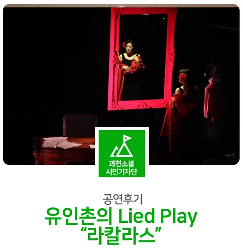 유인촌의 Lied Play에서는 20세기 최고의 소프라노로 꼽히는 마리아 칼라스 탄생 100주년을 기념하기 위해서 “라칼라스”를 기획했고 과천에서 최초로 공연했습니다. 성악가 정희경이 마리아 칼라스의 오페라 아리아 중 5곡을 선보였고 연극적 스토리가 있어서 좀 더 재미있고 집중하게 되었습니다.