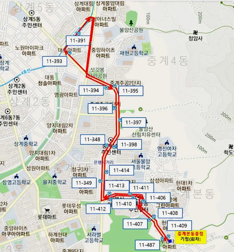※ 중계본동 종점~상계역 구간