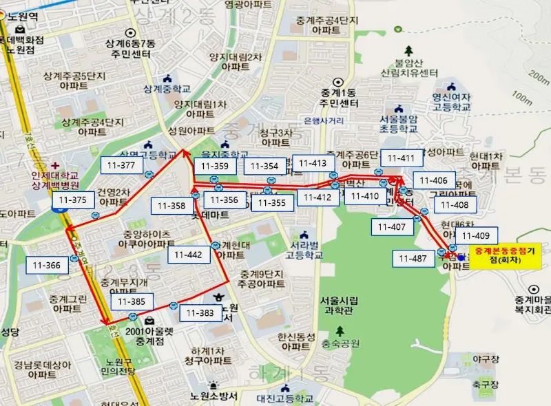 중계본동종점 - 중계주공6단지 - 중계역 - 롯데마트 - 대림벽산아파트 - 중계본동종점