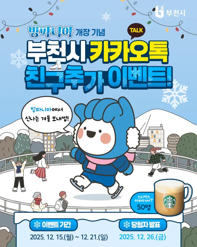 [EVENT]❄️부천 빙파니아 개장 기념 ⛸️ 부천시 카카오톡 친구추천 이벤트 참여하고 스벅 기프티콘 받자!