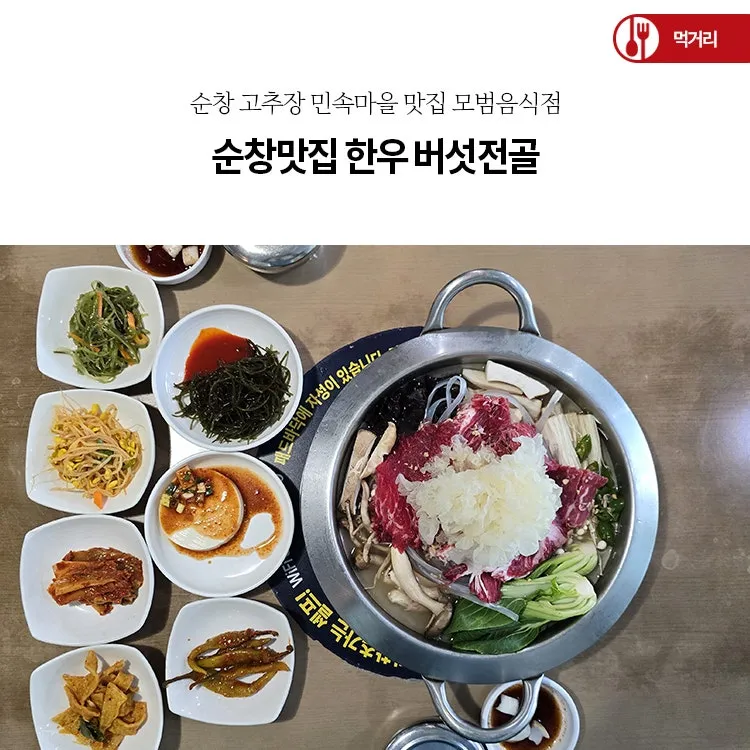 찜통더위도 못 말리는 순창 여행 기력 보충 맛집 어디? 바로 순창 고추장 민속마을 모범음식점 순창 맛집 한우 버섯전골이 정답입니다.