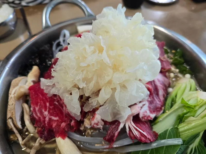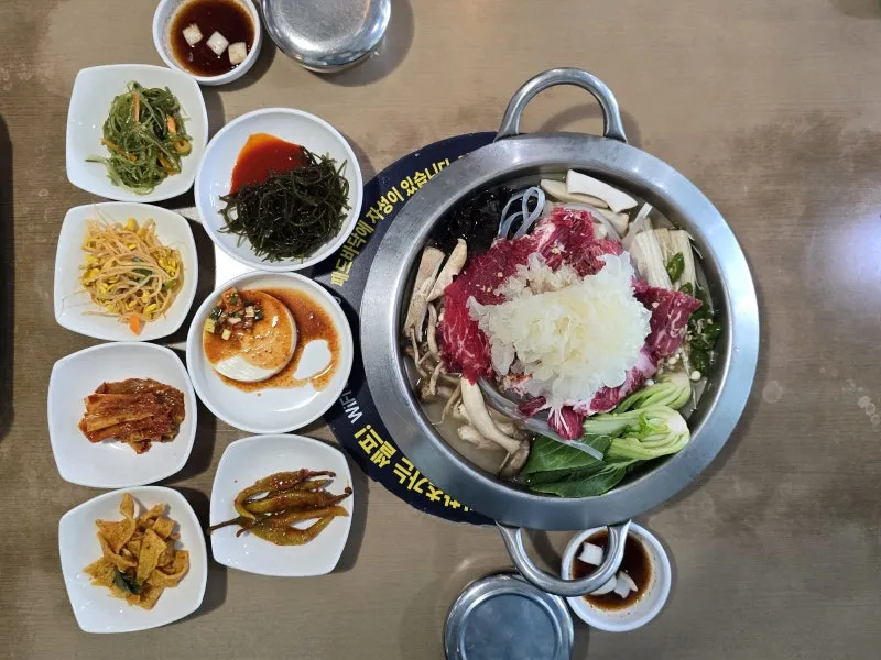 현기증 올라오기 전에 일단 밑반찬으로 입가심하고 한우 버섯전골 먹방으로 마무리~~