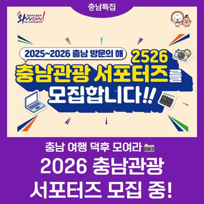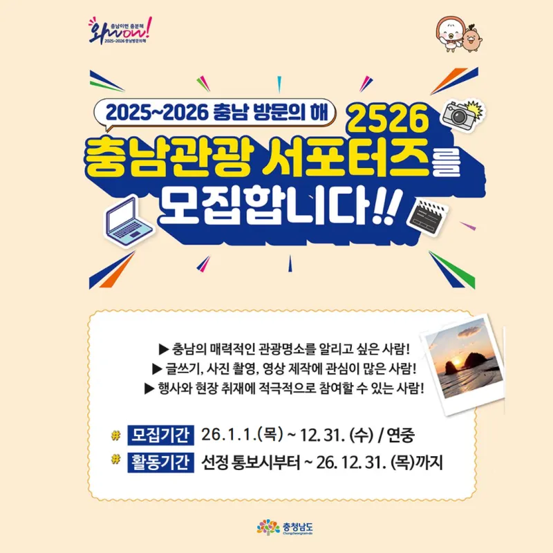 충남 여행 덕후 모여라📸 2026 충남관광 서포터즈 모집 중!