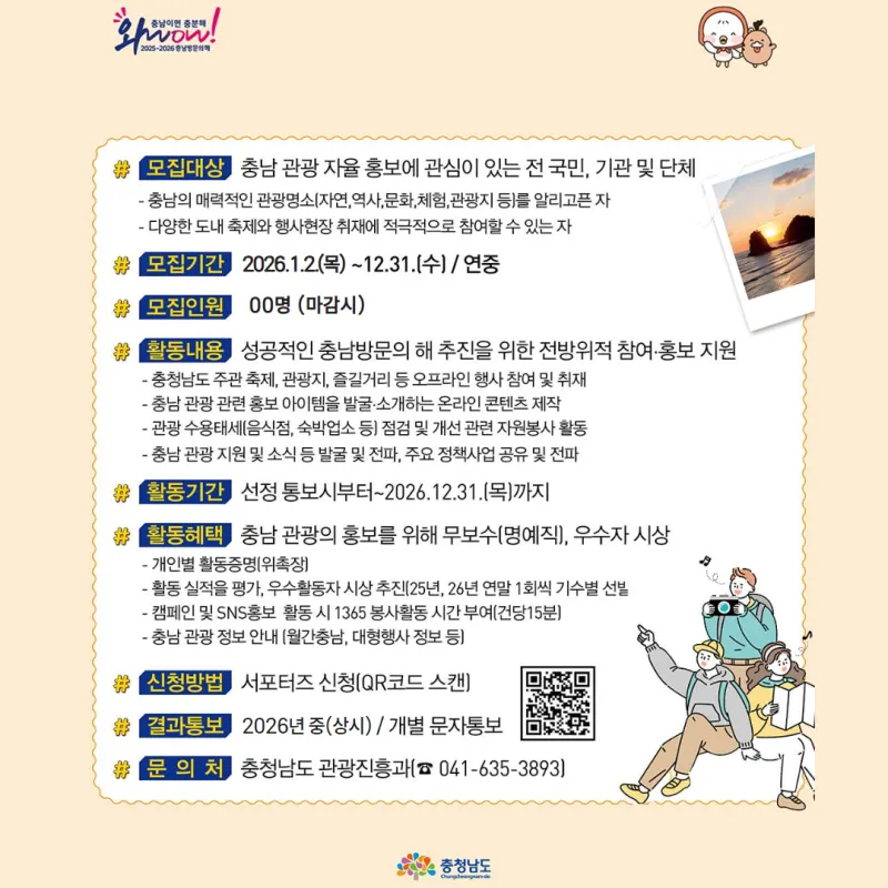 2026 충남관광 서포터즈, 바로 너를 기다리고 있거든!