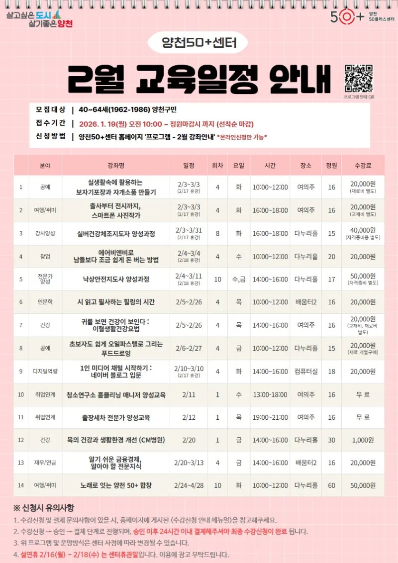 📚 2026년 양천50플러스센터 2월 강좌 수강생 모집