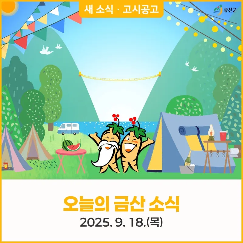 오늘의 금산 소식 9월 18일(목) 새소식 · 고시공고