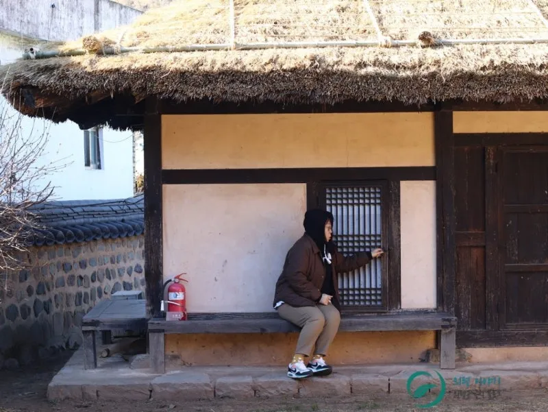 초가집으로 된 반대편에는 앉을 수 있는 의자와
