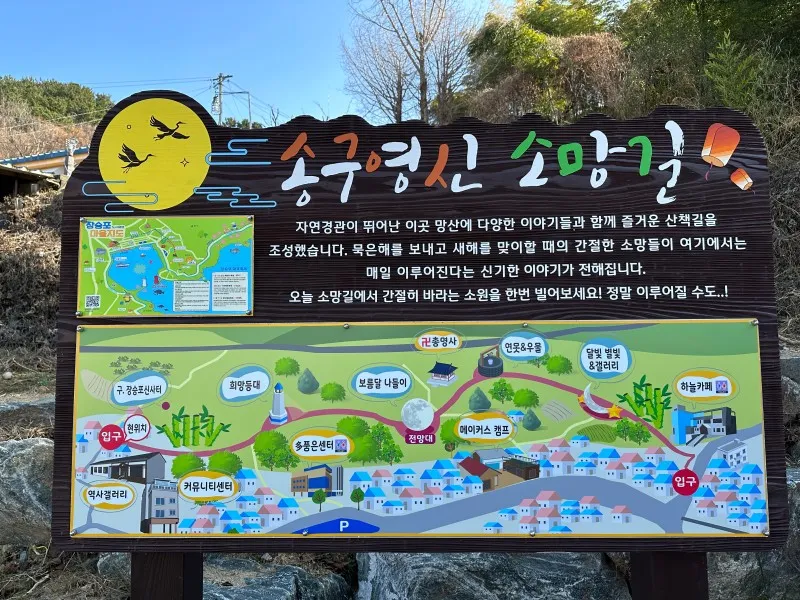 올라가면서 만날 수 있는 마을은 조용하고 따뜻해요. 조용하게 올라가보도록 해요. 조금만 올라가보면 송구영신 소망길에 다다릅니다.