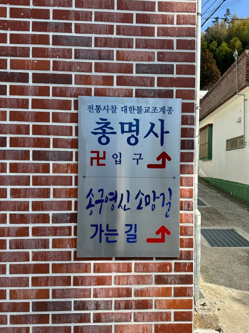 총명사 올라가는 길과 송구영신 소망길 가는 길 표시가 되어 있어요. 골목길을 올라가면 되는데, 이런 동네 골목길은 언제나 정취에 잠기게 만들죠. 따뜻한 동네분위기가 너무 좋았어요.