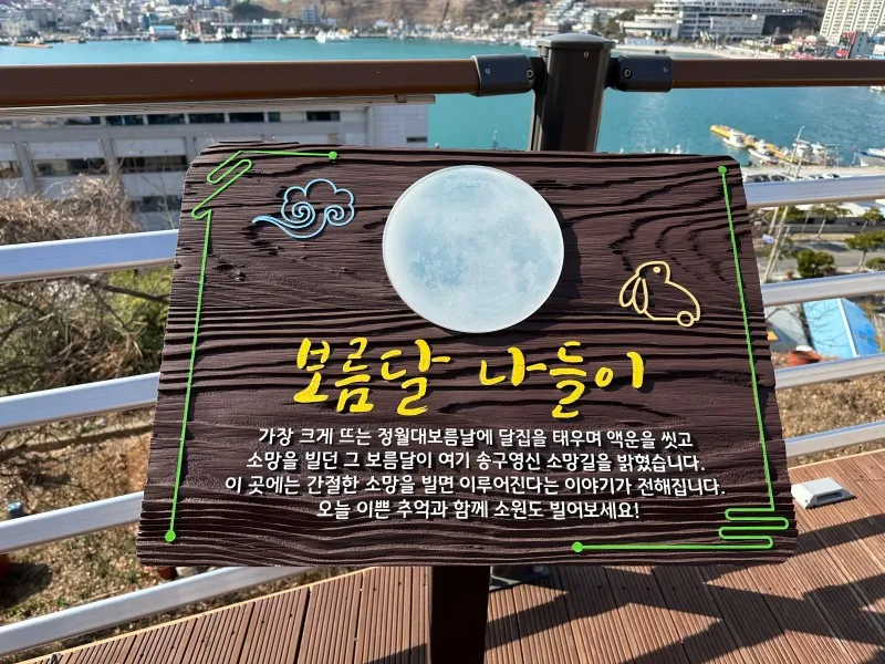 밤에 조명이 밝게 빛나면 더 멋지게 빛날 송구영신 소망길의 보름달인데요. 밤이 되면 장승포항을 비추고 있는 모습이 참 따뜻하더라구요. 저 멀리서 봐도 송구영신 소망길의 보름달은 그자리에서 밝게 빛나고 있을 것 같아서 참 좋았어요.